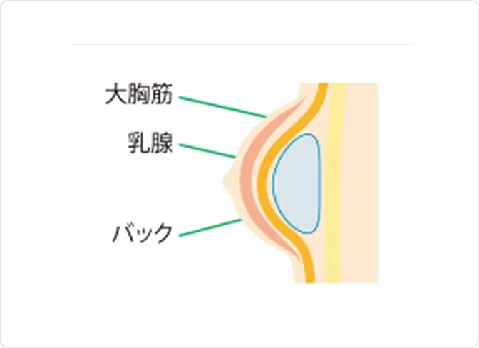 バストのふくらみが小さく、乳腺や皮下脂肪が少なく、皮膚が薄い方、大きなボリュームアップを望む方などに向いている術式です。