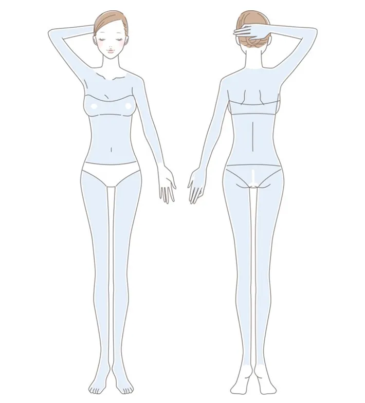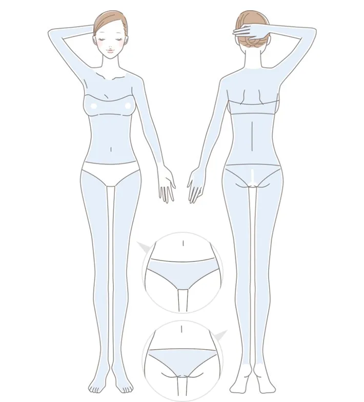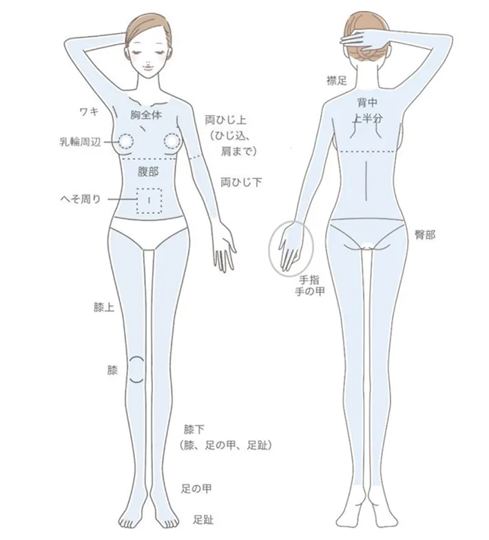 全身コースにVIOがセットのコースです。 イラストの色付けされた部分が対象です。
