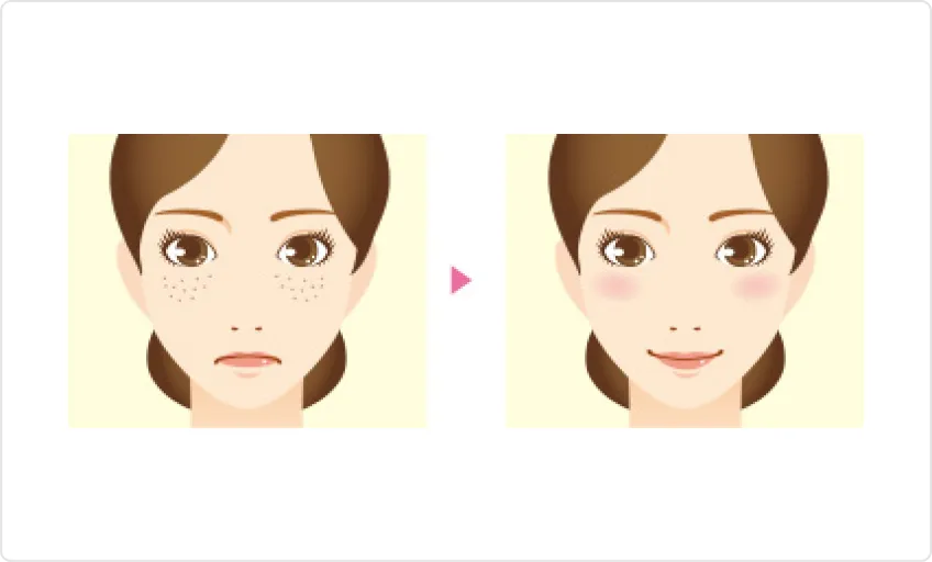 顔全体のくすみや色ムラを改善し、肌のトーンアップを目指したい方におすすめのレーザー治療です。シミが点在している方や、はっきりしたシミだけでなく、全体的な肌の暗さが気になる方にも適しています。